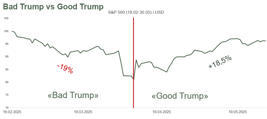 De siste månedene har omtrent alt som har skjedd på børsene dreid seg om USA og Trump. Børsene har gått opp og ned i takt med uttalelser om toll eller ikke toll. I perioden fra innsettelsen og frem til 8. april var Trumps politikk og uttalelser stort sett negativt for børsene. Spesielt de enorme tollsatsene som ble annonsert 2. april skremte markedene. Det vi har lært i etterkant er at Trump til en viss grad lytter til markedene. Når rentene steg og aksjemarkedet falt i etterkant av 2. april var Trump rask med å «ombestemme» seg og utsatte tollsatser. Vi har flere ganger opplevd at Trump går tilbake på politikken sin når markedet reagerer negativt. Spesielt rentemarkedene er viktig for Trump. Det er kritisk for USA at det ikke blir enda dyrere for staten å låne penger. Da må markedet ha tillit til USAs evne og vilje til å betjene denne gjelden og dollaren må forbli verdens «reservevaluta». Selv om det ikke så slik ut de første månedene som President tror vi ikke Trump ønsker å skade økonomien og markedet. Tvert om, han har nok et sterkt ønske om både lavere renter og stigende aksjekurser.