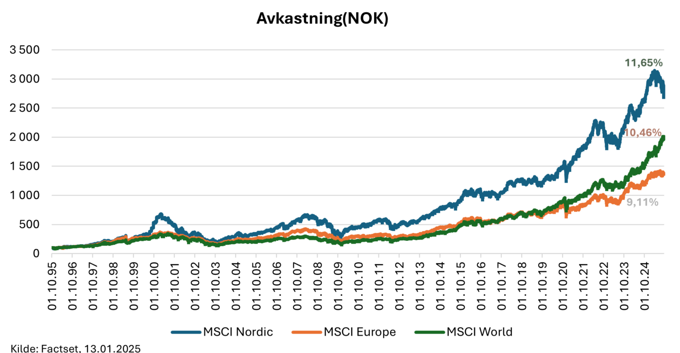 Norden har gitt bedre avkastning enn Europa- og verdensindeksen