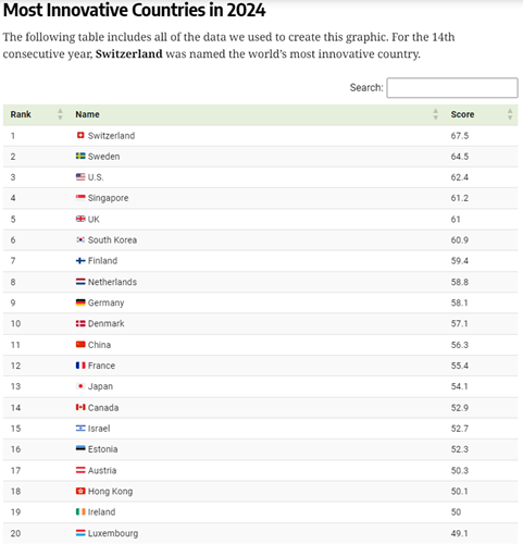 Norden skårer også høyt på innovasjon. I den globale innovasjonsindeksen for 2024, publisert av World Intellectual property Organization, rangeres Sverige som nr.2, av 133 land, Finland nr 7, Danmark nr. 10 og Norge noe lenger bak på 21. plass. Innovasjon og nyskaping er en viktig faktor i selskapenes fremtidige lønnsomhet.