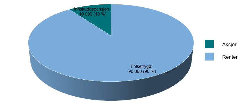 Det vil si at pensjonsopptjeningen din fra folketrygden og fra arbeidsgiver samlet har veldig lav risiko. Dermed kan du selv spare inntil 80 000 kroner årlig til pensjon i aksjefond, og fortsatt kun ha halvparten av din samlede pensjonssparing i aksjefond. De fleste trenger nok ikke så mye, men jobber du i privat sektor er sjansen stor for at du trenger en hel del.
