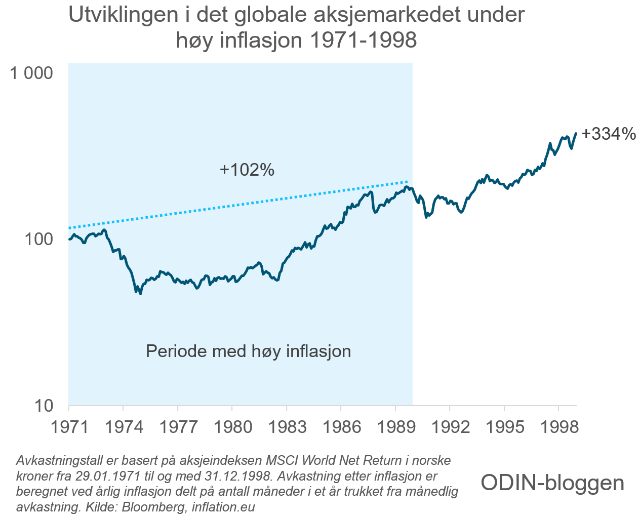• En million kroner i det globale aksjemarkedet ville fra januar 1971 til og med 1989 ha mer enn doblet kjøpekraften sin til tross for rekordhøy inflasjon.